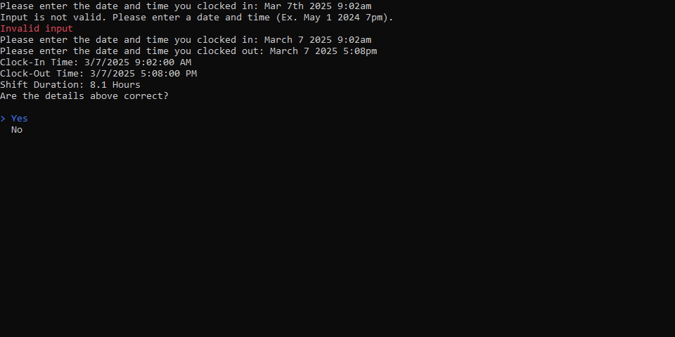 • Calculates total shift duration based on input Clock-In and Clock-Out times you provide.